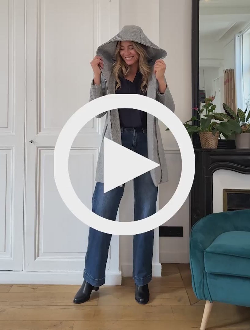 Manteau à capuche et empiècements simili - Gris