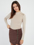 Pull côtelé ajusté à boutons dorés - Beige - 1